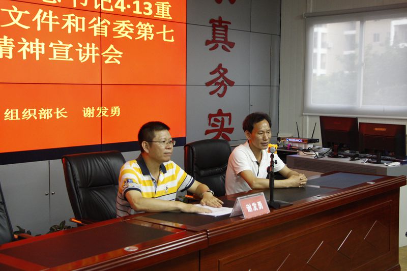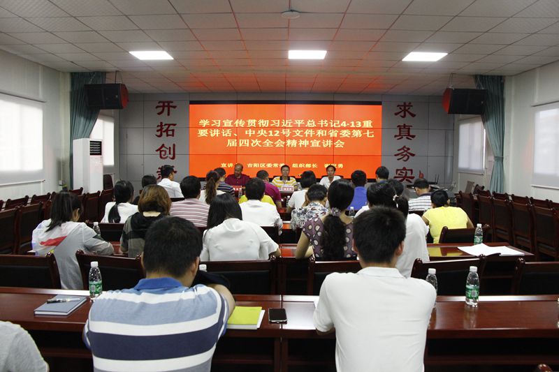 根據吉陽區(qū)委統(tǒng)一部署,學習貫徹習近平總書記“4·13”重要講話、中央12號文件和省委第七屆四次全會精神宣講會在明佳集團三樓會議室舉行。吉陽區(qū)委常委、組織部長謝發(fā)勇作宣講報告。集團黨支部書記、董事長陳明主持宣講會。