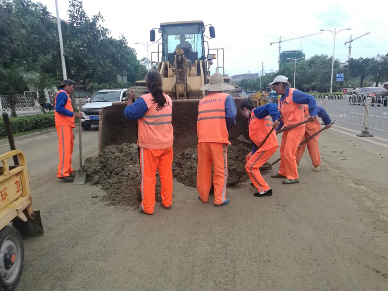 7月23日上午,集團(tuán)公司組織人員,并派出鏟車、清地車、高壓沖洗車等加強(qiáng)作業(yè),對(duì)臺(tái)風(fēng)過(guò)后的主次干道堆積泥沙進(jìn)行大沖洗,對(duì)散落垃圾、斷裂樹(shù)枝樹(shù)葉進(jìn)行全面普掃清運(yùn),對(duì)倒伏樹(shù)木及時(shí)扶正,加強(qiáng)垃圾清運(yùn),確保道路暢通整潔。截止發(fā)稿,集團(tuán)公司共出動(dòng)機(jī)械化清掃車輛28車次,各類垃圾壓縮車輛271車次,清運(yùn)垃圾851噸。