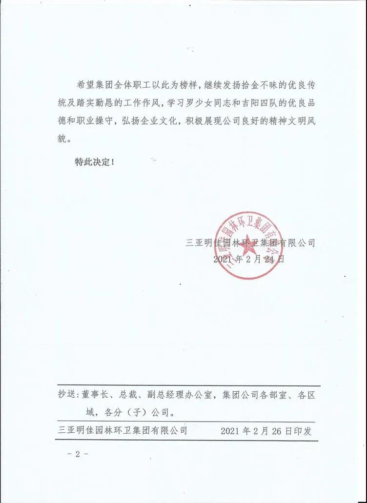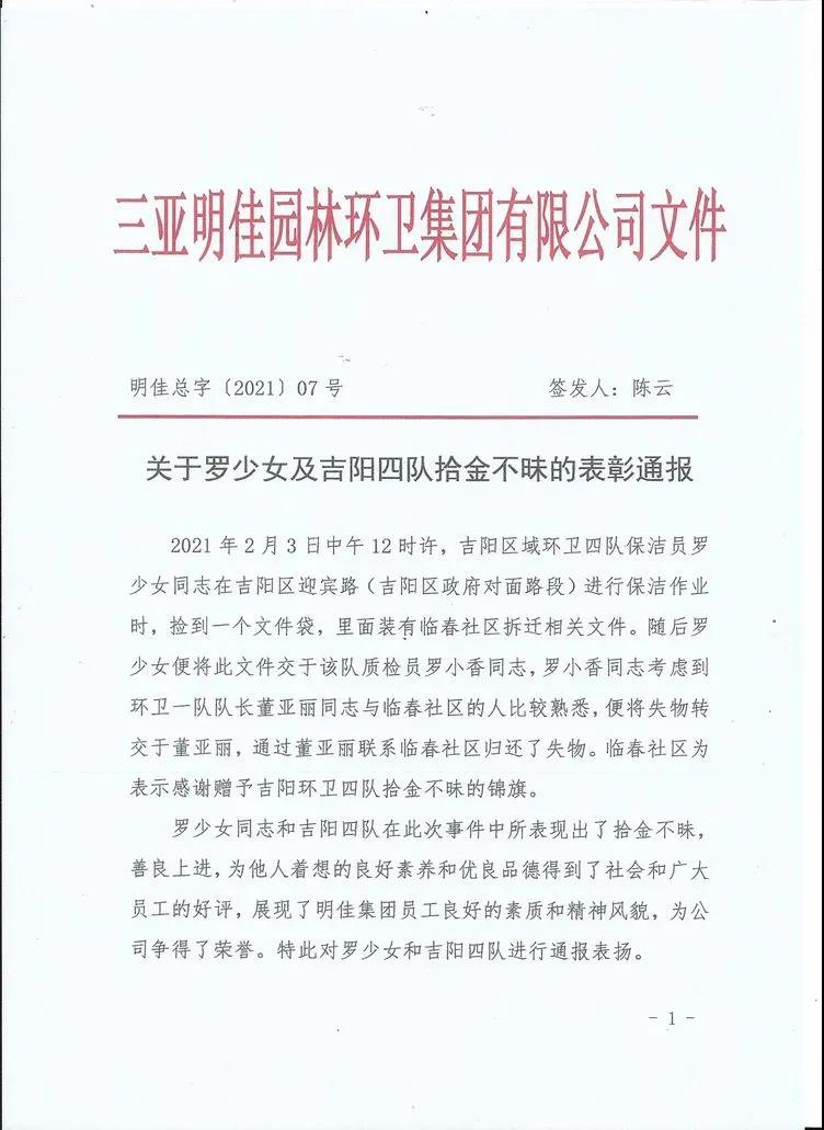 會上,明佳集團(tuán)黨支部書記、董事長陳明宣讀了《關(guān)于羅少女及吉陽四隊(duì)拾金不昧的表彰通報(bào)》