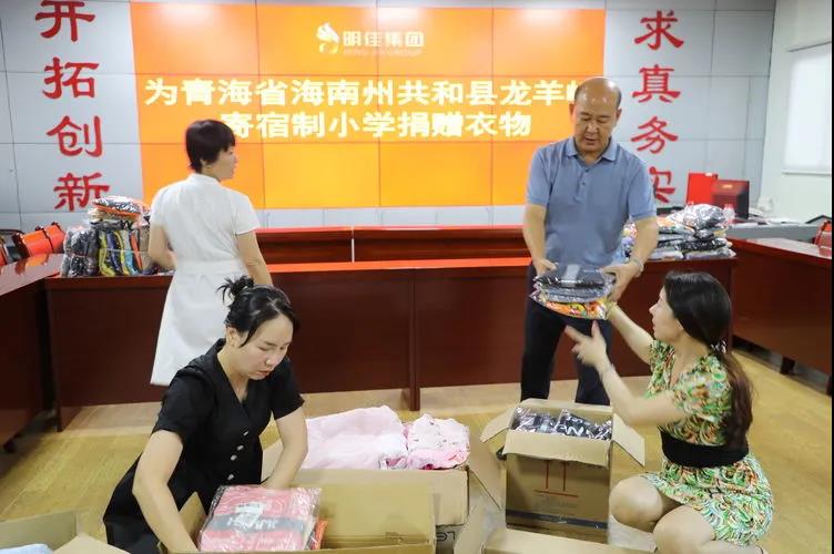 7月29日,明佳集團(tuán)黨支部在工作管理群號(hào)召管理層和辦公室人員為青海省海南州共和縣龍羊峽寄宿制小學(xué)孩子捐贈(zèng)衣物,一周時(shí)間內(nèi)先后收到職工捐贈(zèng)衣服120公斤。公司董事會(huì)也購(gòu)買(mǎi)了228件新衣服捐贈(zèng)給孩子們。