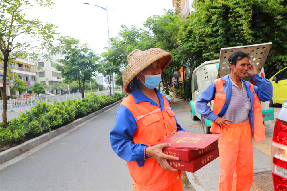 2019年中秋佳節(jié)來(lái)臨之際,為了使明佳集團(tuán)公司全體員工感受到“大家庭”的溫暖,明佳集團(tuán)黨支部、明佳集團(tuán)工會(huì)聯(lián)合組織開展了“中秋佳節(jié)、情暖職工”活動(dòng)。自9月5日起,明佳集團(tuán)工會(huì)主席高斐斐、明佳集團(tuán)黨支部宣傳委員陳冬梅和各區(qū)域領(lǐng)導(dǎo)分別在集團(tuán)公司、各環(huán)衛(wèi)隊(duì)為職工送上中秋月餅和涼茶,并致以節(jié)日的問(wèn)候和衷心的祝福。